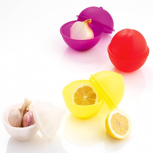 I used an assortment of containers, including colorful Veggie Savers from Mastrad for the fruit I brought for dessert. To go with the wine-and-cheese basket, star fruit in a bright purple container looked great.