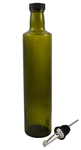 If you don't want to bother to empty and clean your own wine bottles, consider buying a ready-to-fill bottle and pourer combo. These ones fit a half liter of oil and have a pourer that fits snugly and securely inside.
