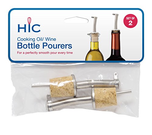 These pourers have natural cork stoppers that fit snugly into a standard wine bottle. They pour quickly and evenly, giving you plenty of control. I've used these pourers for over a decade in the same bottle with no real issues other than the occasional cleaning (I just run it through the dish washer). The only downside? They won't fit into the top of a standard bottle of olive oil, which means that you have to transfer your oil to a wine bottle for them to work.
