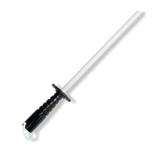 My top pick for ceramic steels is made by DMT (Diamond Machining Technology), a company I learned about on knife forums that specializes mostly in diamond steels. It has a wide crossguard for maximum hand protection and seems especially well built, with a thick, solid plastic handle.